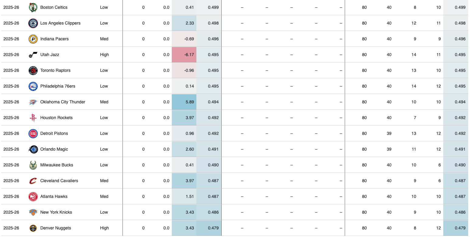 数据网站Positive Residual也更新了社交媒体,根据NBA官方已公布的赛程,统计了联盟各队的赛程难度,评判标准是球队实力、每场比赛前的休息天数、每场比赛的飞行距离、每场比赛的海拔高度,以下是具体排名,按照从困难到容易的顺序排列: